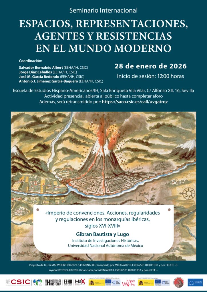 El grupo PAIDI HUM 680 les hace partícipes del Seminario Internacional: Espacios, representaciones, agentes y resistencias en el mundo moderno, que tendrá lugar el 28 de enero de 2026. Contará con la intervención de Gibran Bautista y Lugo titulada: «Imperio de convenciones. Acciones, regularidades y regulaciones en los monarquías ibéricas, […]