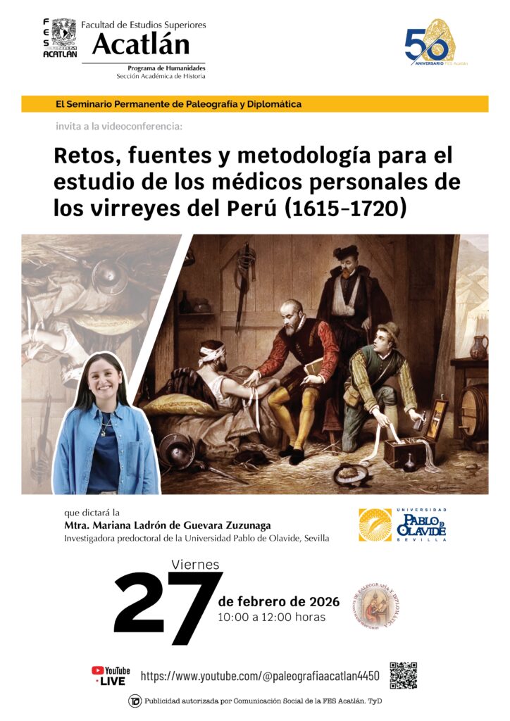 El grupo PAIDI HUM 680 les invita al Seminario Permanente de Paleografía y Diplomática de la Facultad de Estudios Superiores Acatlán, que contará con la videoconferencia titulada «Retos, fuentes y metodología para el estudio de los médicos personales de los virreyes del Perú (1615-1720)», impartida por nuestra miembro Mariana Ladrón […]