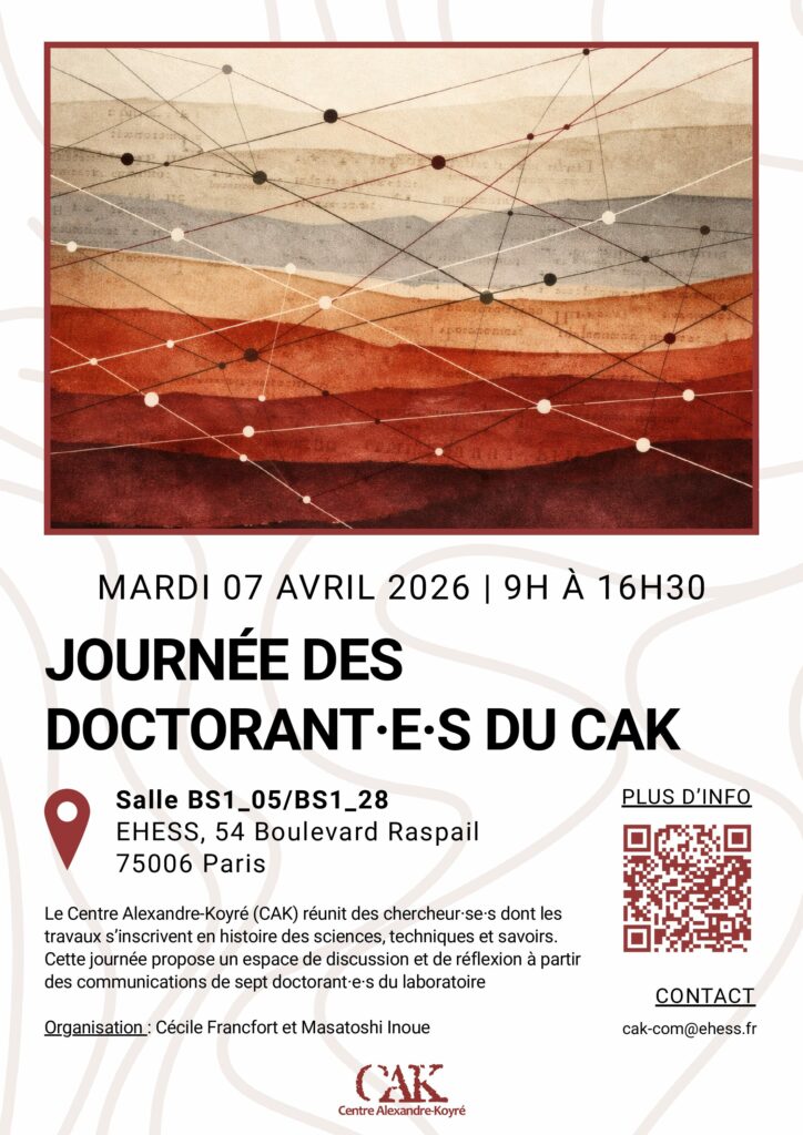 El grupo PAIDI HUM 680 les hace partícipes del seminario Journée des Doctorant·e·s du CAK que tendrá lugar el próximo 7 de abril. En él, participará nuestra miembro Mariana Ladrón de Guevara Zuzunaga con su intervención titulada «Court physicians in 17th century Peru: viceroys, medicine and networks». Programa completo aquí.