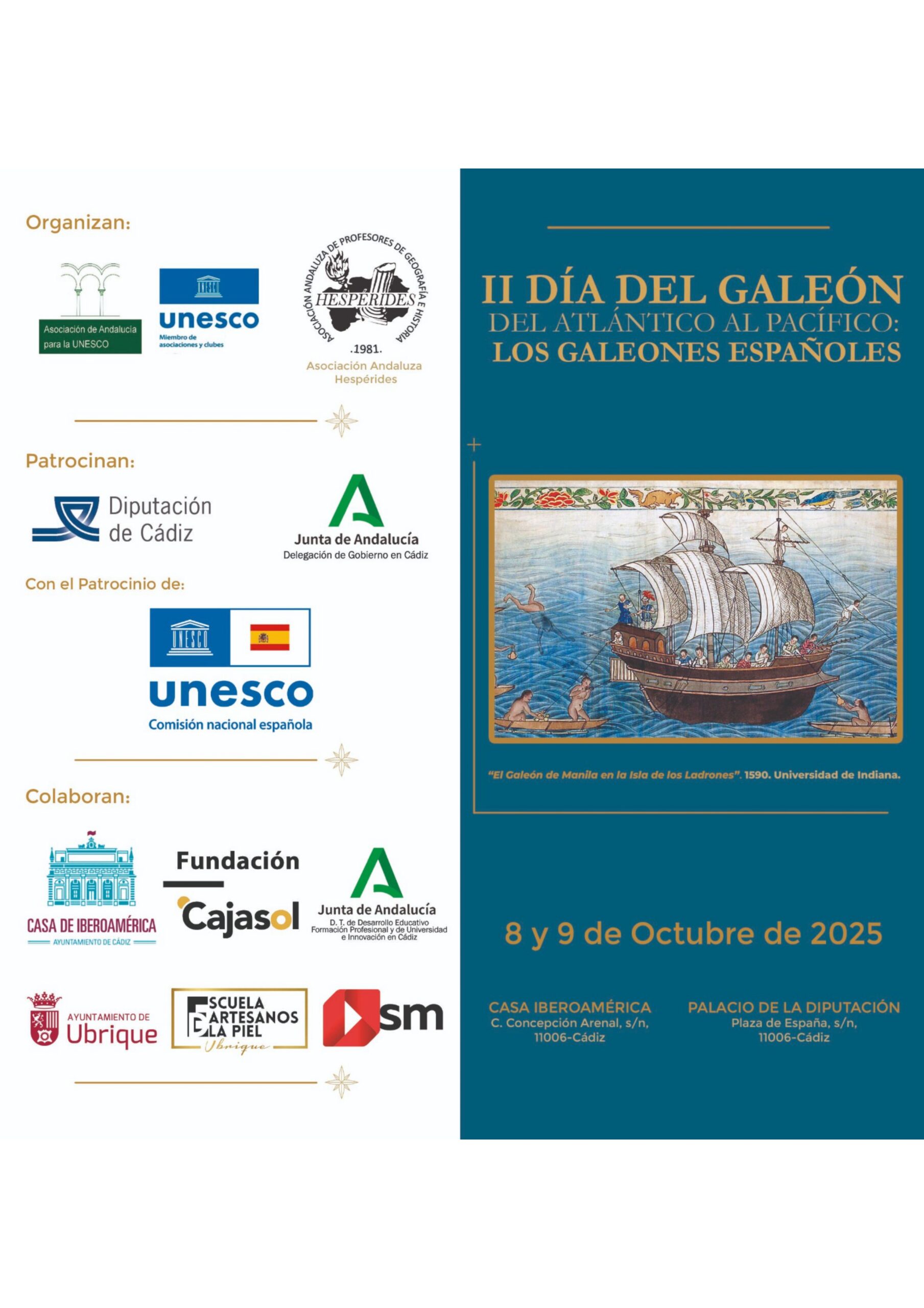 El grupo PAIDI HUM 680 les hace partícipes de las II Jornadas del Galeón del Atlántico al pacífico: Los galeones españoles, que tendrán lugar entre el 8 y el 9 de octubre. En ellas, contaremos con la participación de nuestras miembros Natalia Maillard Álvarez con su ponencia Libros para unir mundos: la circulación de obras europeas en el Atlántico y el Pacífico (ss. XVI y XVII) y Montserrat Cachero Vinuesa con su ponencia La presencia femenina en el comercio global durante los siglos XVI y XVII.