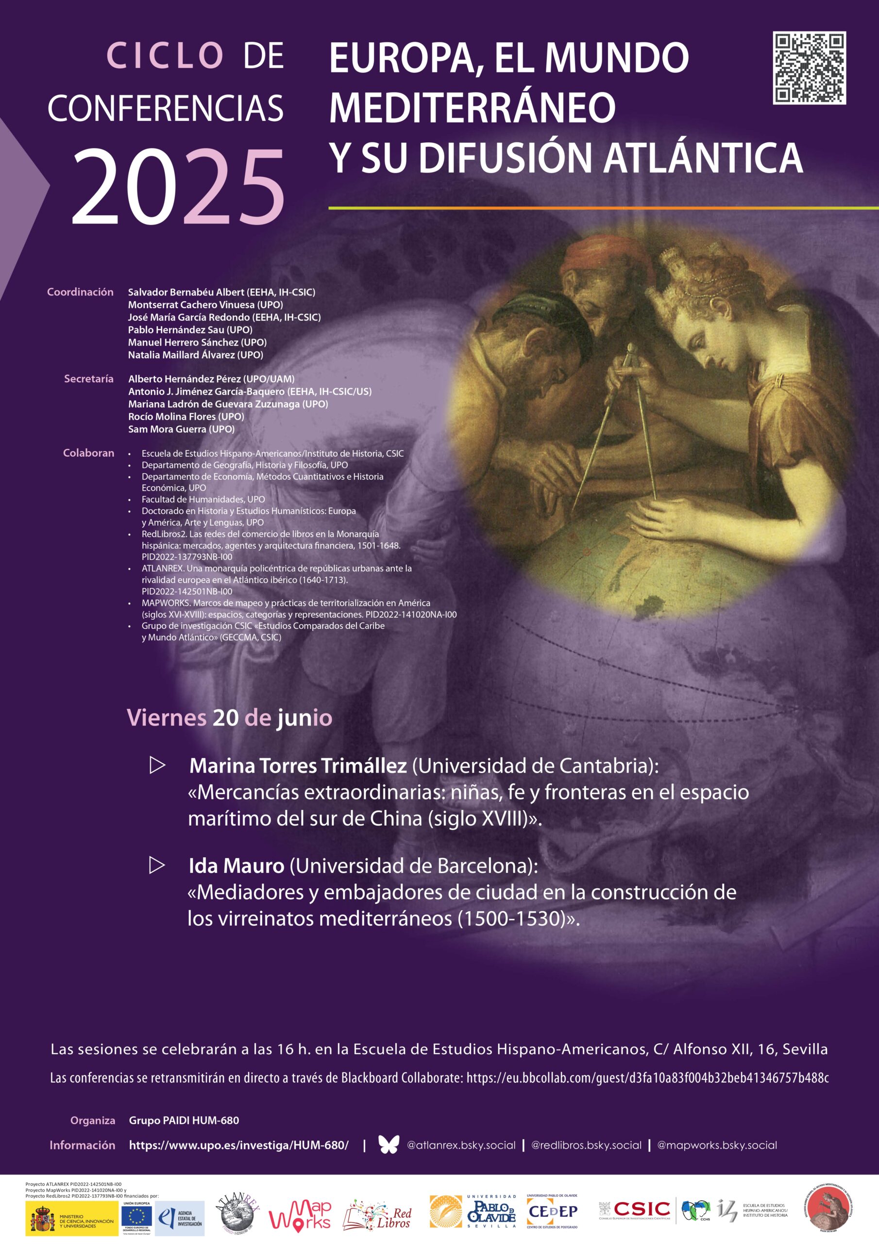 El grupo PAIDI HUM 680 les hace partícipes de la sesión del ciclo de conferencias Europa, el mundo mediterráneo y su difusión atlántica que tuvo lugar el viernes 20 de junio a las 16:00h en la sala Enriqueta Vila Vilar de la EEHA (Calle Alfonso XII, 16, Sevilla). Contaremos con las siguientes intervenciones: