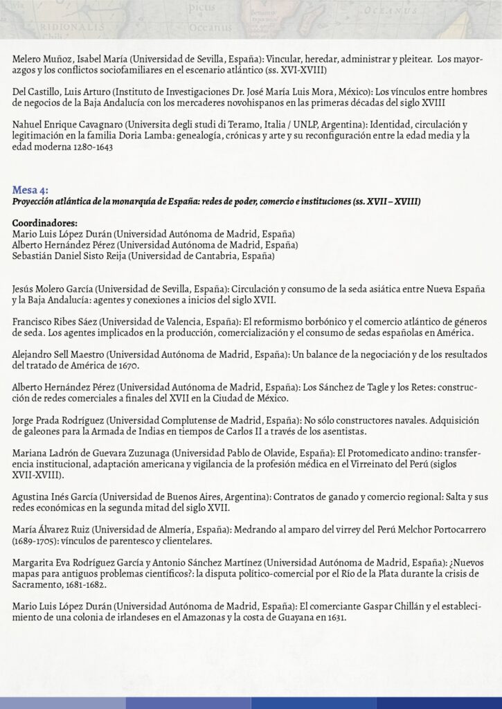Mario Luis López Durán y Alberto Hernández Pérez, junto a Sebastián Daniel Sisto Reija (Universidad de Cantabria) coordinan la mesa 4 titulada Proyección atlántica de la monarquía de España: redes de poder, comercio e instituciones (ss. XVII-XVIII) y que contará con las siguientes intervenciones:
