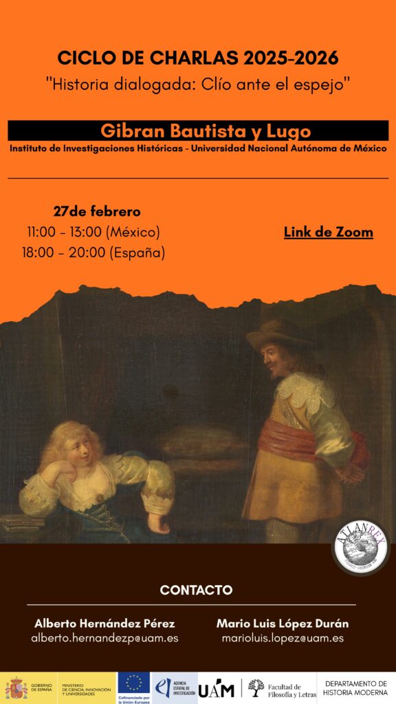 Nos complace anunciar la celebración de la 13ª sesión de la II Edición del Ciclo de Charlas «Historia Dialogada: Clío ante el espejo» donde contaremos con la participación de Gibran Bautista y Lugo (Instituto de Investigaciones Históricas/Universidad Nacional Autónoma de México).