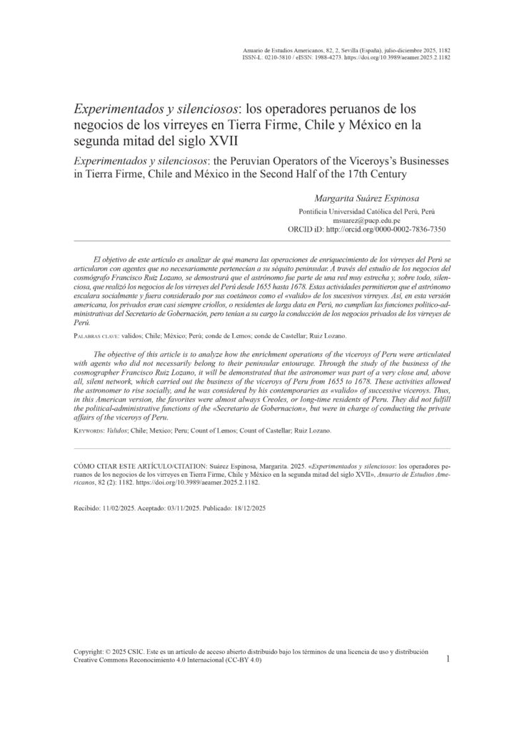 ARTÍCULO: Experimentados y silenciosos: los operadores peruanos de los negocios de los virreyes en Tierra Firme, Chile y México en la segunda mitad del siglo XVII