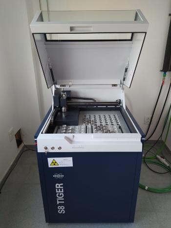 X-ray fluorescence (XRF) system for elemental analysis of solid and liquid samples.