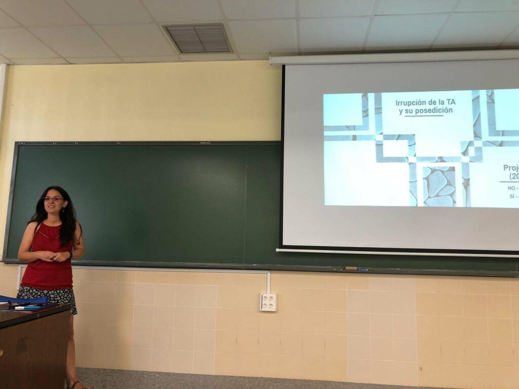 La Dra. Carmen Álvarez-García presentó su ponencia «Combinación de traducción humana y posedición de traducción automática en la formación inicial en traducción (alemán-español)» en la que reflexiona sobre la idoneidad de incluir la posedición de traducciones automáticas en la enseñanza de la traducción en las primeras etapas del aprendizaje. La autora presentó los resultados de un análisis realizado sobre una actividad llevada al aula en la que se combinaron la traducción humana y la posedición de traducción automática, empleando para ello dos fragmentos consecutivos de un mismo texto. Se utilizó un corpus conformado por los trabajos de evaluación de un grupo de 55 alumnos de la asignatura obligatoria “Traducción de textos alemanes”, que supone el primer contacto con la formación en traducción para los estudiantes del Grado en Lengua y Literatura Alemanas de la Universidad de Sevilla (España). Tanto las posediciones como las traducciones fueron sometidas a una evaluación analítica, para lo que se establecieron categorías de errores con calificación numérica, así como calificaciones sumativas por aciertos, con la intención de otorgarles una nota final a cada proceso y comparar los resultados. De esta manera, se pretendió llegar a conclusiones sobre las diferencias en la calidad del texto producido por un alumno principiante cuando posedita una traducción automática y cuando traduce sin empleo de motores automáticos.