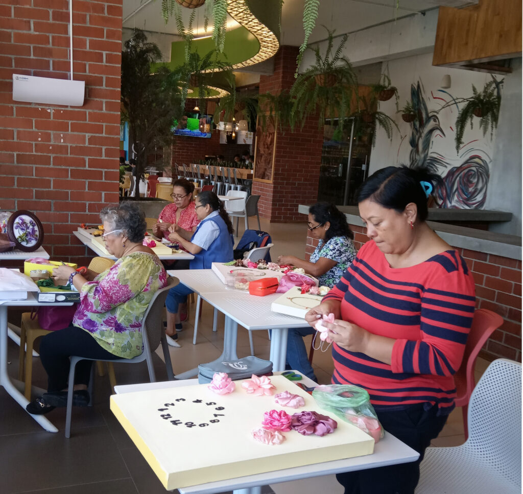 Luego de aprender de forma autodidacta las técnicas de bordado que en la actualidad manejo, sentí el deseo de transmitir esos conocimientos a otras mujeres que, como yo, tienen sed de aprendizaje y superación. Desde el año 201 imparto clases gratuitas de bordados convencionales a un grupo de ellas, en su mayoría mayores de 50 años, que elaboran piezas bordadas para la venta, con el consiguiente aporte a la economía familiar y trabajando desde el seno del hogar. El grupo se ha mantenido constante y bien interesado en aprender y a la fecha reciben clases, vía Zoom, para la elaboración de cuadros con técnicas de bordado con listones de seda que son de un nivel más avanzado.