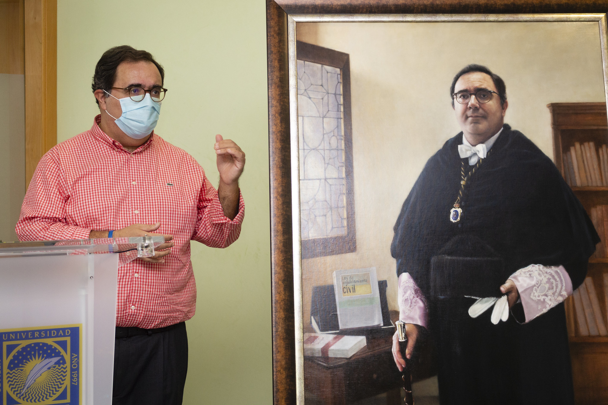 Inauguración del retrato de Vicente C. Guzmán Fluja en la galería de rectores de la Universidad Pablo de Olavide. El cuadro es obra del artista sevillano José María Peña.