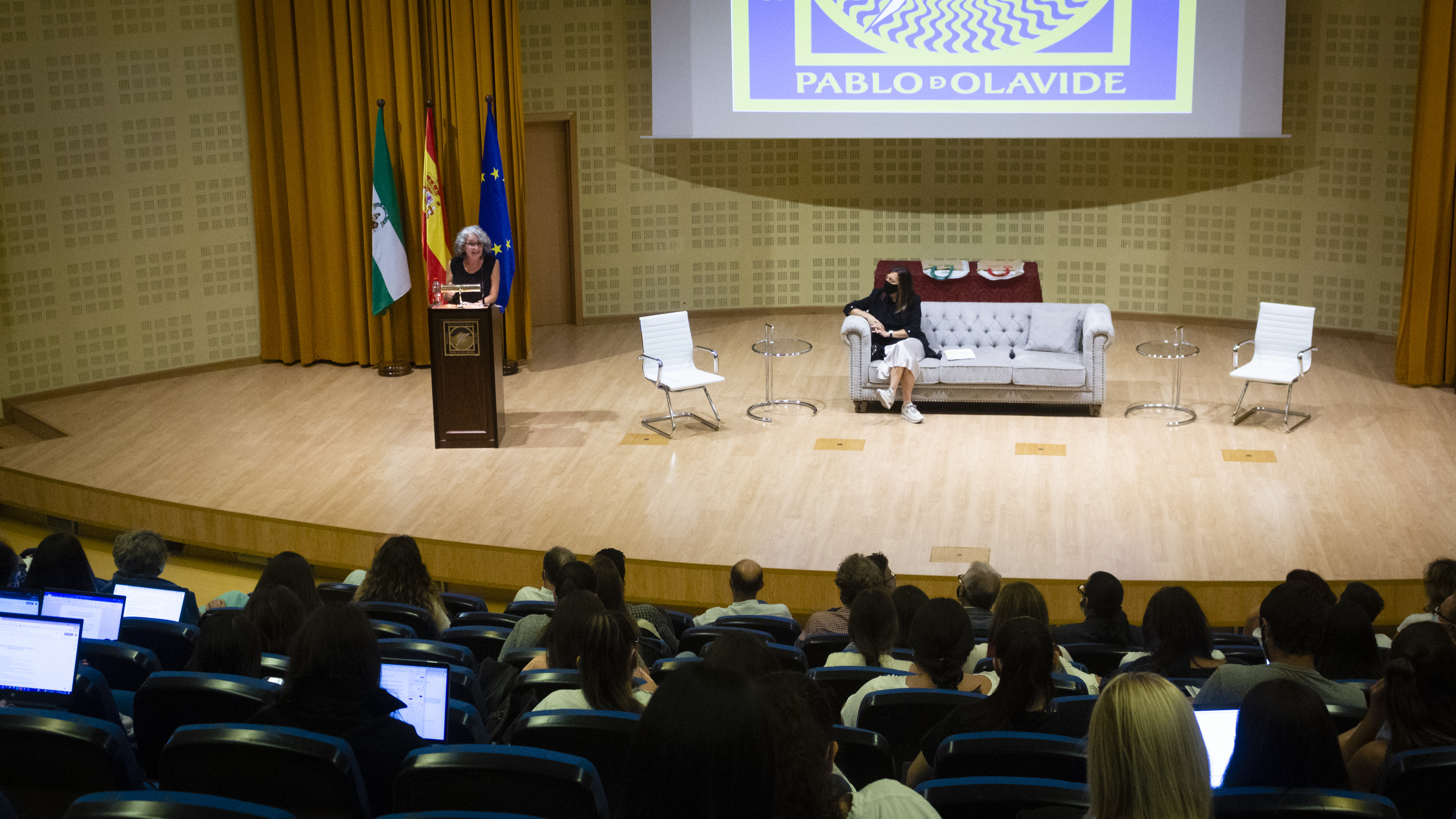 06/10/2021. Lección Inaugural del curso 2021/2022 de la Facultad de Ciencias Sociales ‘La naturaleza humana y su carácter social: un abordaje interdisciplinar’, a cargo de la catedrática de Sociología de la UPO, Rosalía Martínez García. El acto estuvo presidido por la decana de la Facultad de Ciencias Sociales, Rosa María Díaz Jiménez.