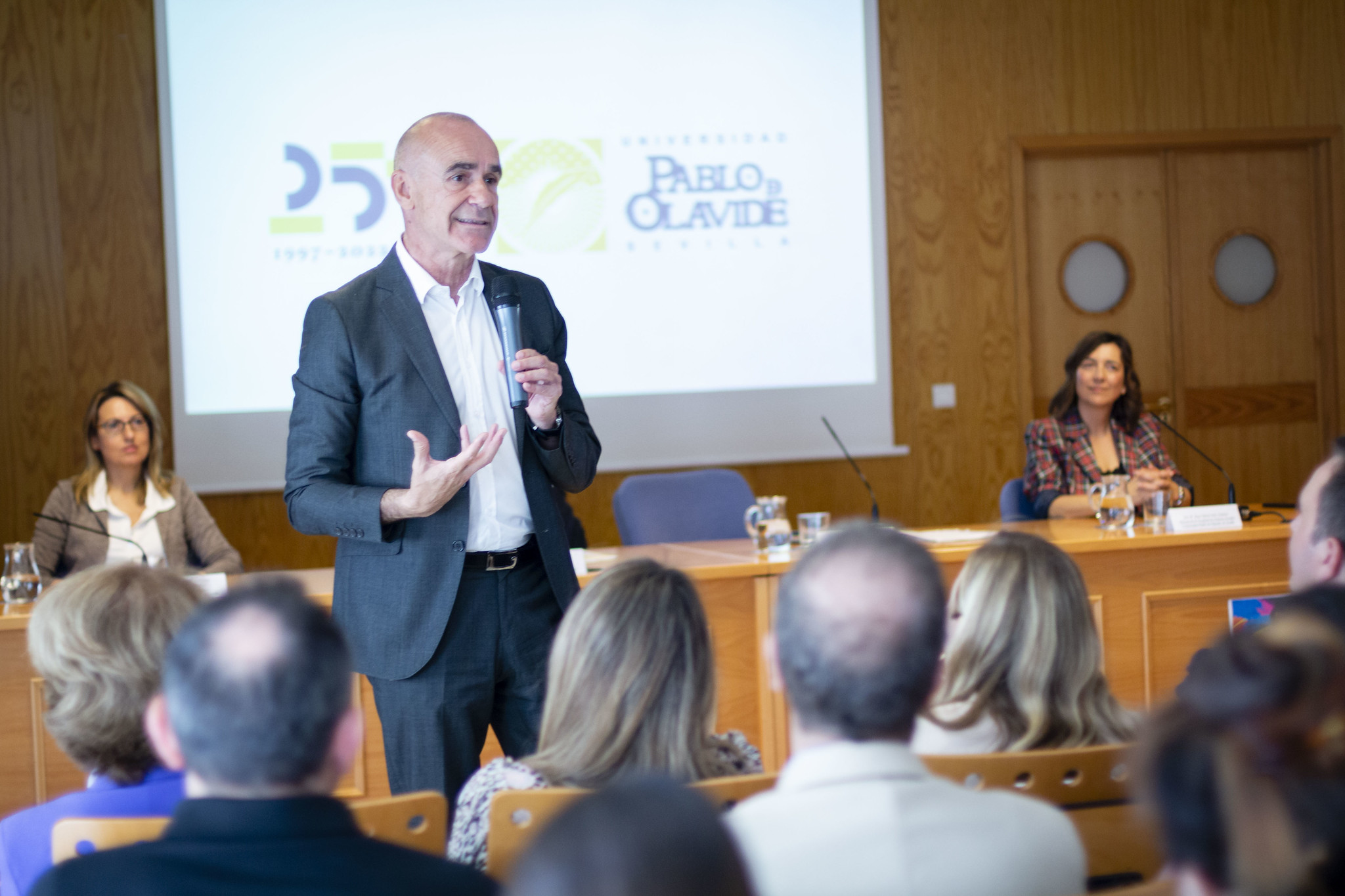 23/03/2023. El alcalde de Sevilla visitó el campus de la Universidad Pablo de Olavide donde ofreció la conferencia ‘Sevilla: construir juntos un futuro lleno de oportunidades’ al alumnado de la Facultad de Ciencias Sociales en un acto organizado por el Vicerrectorado de Relaciones Institucionales y Fundaciones y presidido por el rector de la UPO, Francisco Oliva.