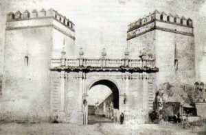 Durante los primeros años, para acudir a la Feria se debía salir de la ciudad por la Puerta Nueva, que se muestra en la imagen, siendo esta la primera portada del Real.