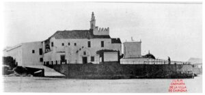 A los lados de las naves laterales estaban adosados dos cuadriláteros, que servían, el del lado del mar, como pórtico de entrada, única que desde la calle había; y el del lado del convento constituía una pequeña y devota capilla, donde estaba la patética y expresiva imagen del Señor de la Humildad.