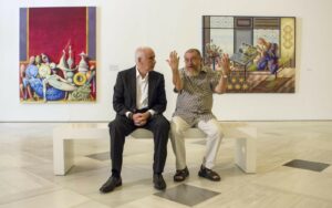 Nacido el 12 de mayo de 1948 en Tarifa (Cádiz), Pérez Villalta ha trabajado tanto la pintura como la escultura, el grabado y el diseño llegando a posicionarse como uno de los artistas más representativos del posmodernismo español. Como comentábamos, forma parte de la nueva figuración madrileña que surgió con el movimiento de los 80, pero hay quien lo incluye también en una corriente llamada neomanierismo. Este estilo está compuesto por artistas figurativos que se inspiran en modelos del pasado (pintura renacentista, manierista, barroca), pero tratando los temas con cierta ironía y parodia, rozando la caricatura, y normalmente con un gran sentido de la vanguardia y el color.