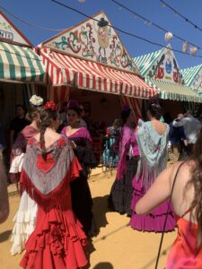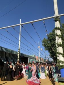 What actually happened was quite the opposite! I went to 4 days of Feria and I was in fact invited by a friend to a private caseta! The private caseta was such an amazing experience. I was so welcomed by the friends of my friend who had invited me. They each took turns teaching me sevillanas and we had so much fun dancing together. They all chatted to me during the evening and were really excited to teach me fun things about Feria. It just shows how passionate the people here are about Feria that they were so welcoming to a stranger like me and instantly made me feel so included in all the festivities!