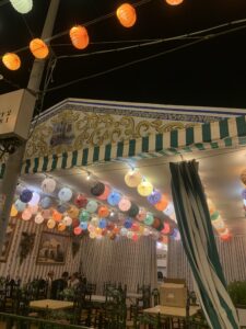 However, in the run up to Feria, I did have some nervousness about the casetas. I was told there were mainly private casetas and that you had to be invited by someone’s family in order to be allowed in. This caused some apprehensiveness as, although I did have some Spanish friends, none had private casetas. I was told that the alternative would be going to public casetas but that there are only very few and that the queues were very long, so they were nearly impossible to get use out of.