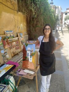 Comenzó a pintar y hasta que llegado el tiempo se sintió capaz de emprender un camino en solitario en la calle, creando su obra y ofreciéndosela a los viandantes. La necesidad pecuniaria de subsistencia le hizo ver que ese era un medio de vida alcanzable y con la gran ventaja de vivir ejerciendo una oficio que la apasiona.
