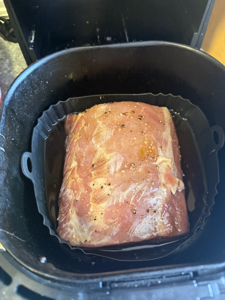- Meter la pieza de carne en un cestillo apto para la freidora e introducirla en ella junto con la salsa que nos haya sobrado.