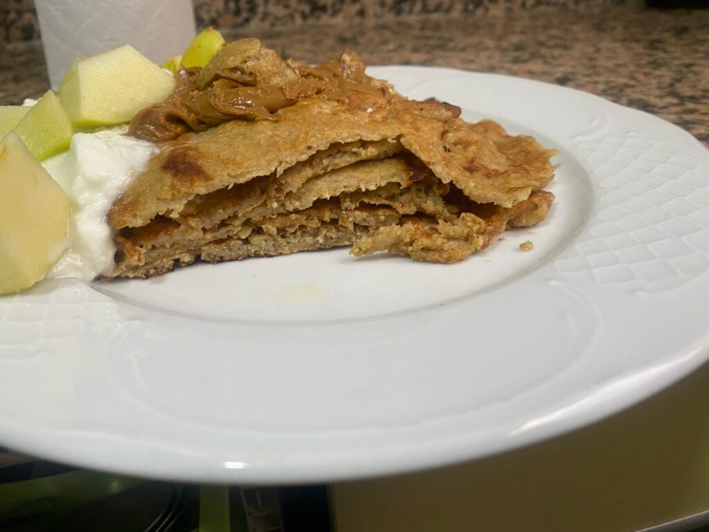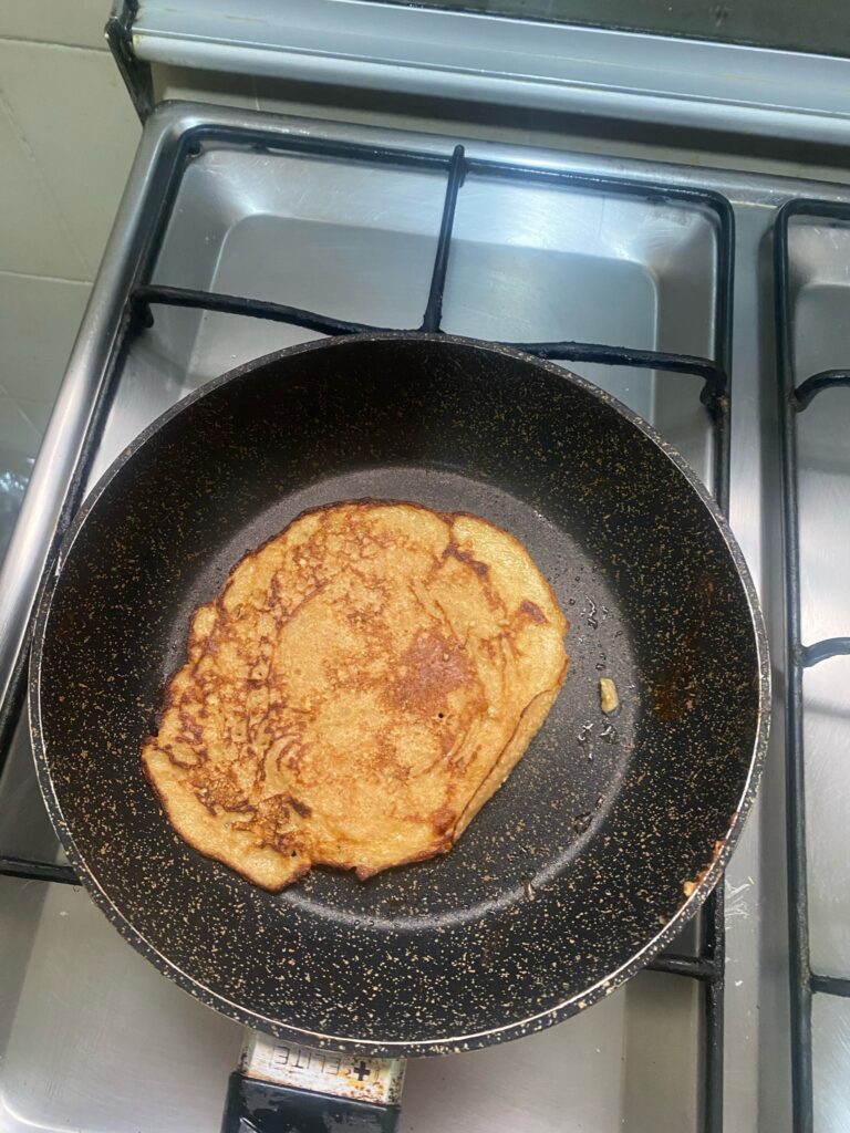 RESULTADO: satisfactorio, las tortitas presentaron un sabor agradable y naturalmente dulce gracias al plátano. En cuanto a la textura, quedaron ligeramente densas, aunque bien cocinadas y fáciles de manipular.