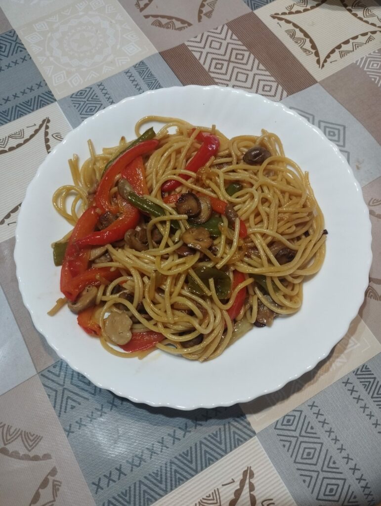 Los espaguetis tenían un sabor pronunciado, por lo que estaban muy sabrosos. Estaban en su punto de cocción y las verduras muy buenas, le daban muy buen sabor al plato.