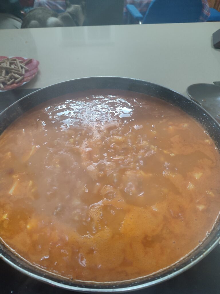 Mi otra versión favorita es en la que el caldo es de pescado y la carne es sustituida por merluza, almejas y langostinos, es una combinación deliciosa también.