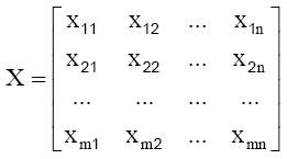1º Especificación de la matriz de respuestas o matriz de decisión: partiendo de un conjunto X de m alternativas y un conjunto J de n criterios, se construye una matriz X cuyos elementos xij representan las evaluaciones de la alternativa i (i = 1,2,...m) respecto del criterio j (j = 1,2,…n):