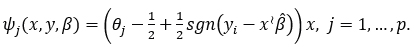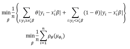 Donde ρθ (λ)=(θ-I(λ<0)), λ es la función de verificación e I(∙) es la función indicadora habitual. El problema de regresión cuantílica anterior se puede reescribir como: