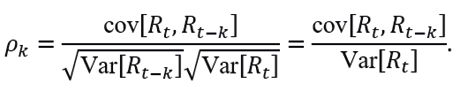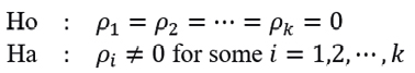 is to test whether there are significant autocorrelations between two variables Rt and Rt-k, separated by k periods, defined by