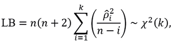 where k is the number of lags to test, with statistic
