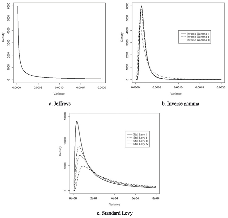 On the other hand, the choice of the priori distribution for volatility is made based on experience or on the suggestion of the researcher or an expert. In this case, given that the Jefrey, Gamma - Inverse and Standard Levy distributions have been chosen as prior distributions to describe volatility, other possible distributions similar in nature to those chosen in this work could be proposed as future work, that is, they should not contain negative values in their structure. In addition, due to the lack of information from an expert, an empirical Bayesian method (Tovar-Cuevas, 2015) was proposed for the selection of the hyperparameters of the priori distributions.